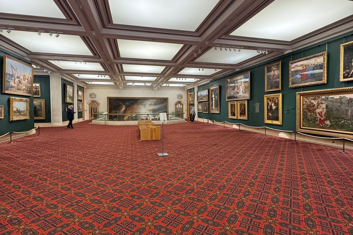 Find a guide to the works at h ttps://app.smartify.org/en-GB/ venues/guildhall-art-gallery (but you may lose signal on lower floors). Lockers, coat check, WC downstairs; small Roman ruins at bottom.