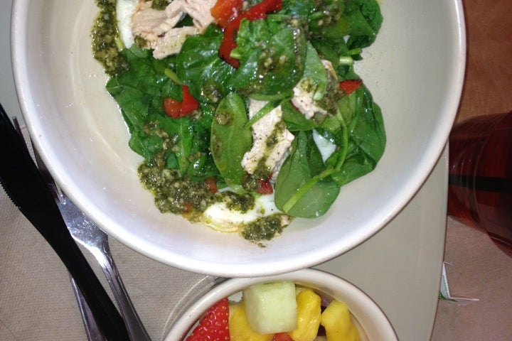 Their BBQ Chicken flatbread is phenomenal! I usually get it in a pick 2 combo with either the cheddar broccoli soup or the mac & cheese.