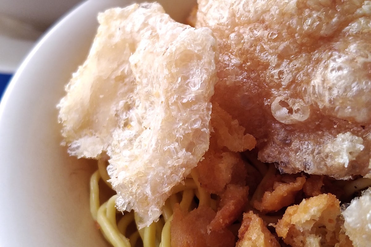 Plain old yellow egg noodle with pork crackling and soup. Plain meh only...