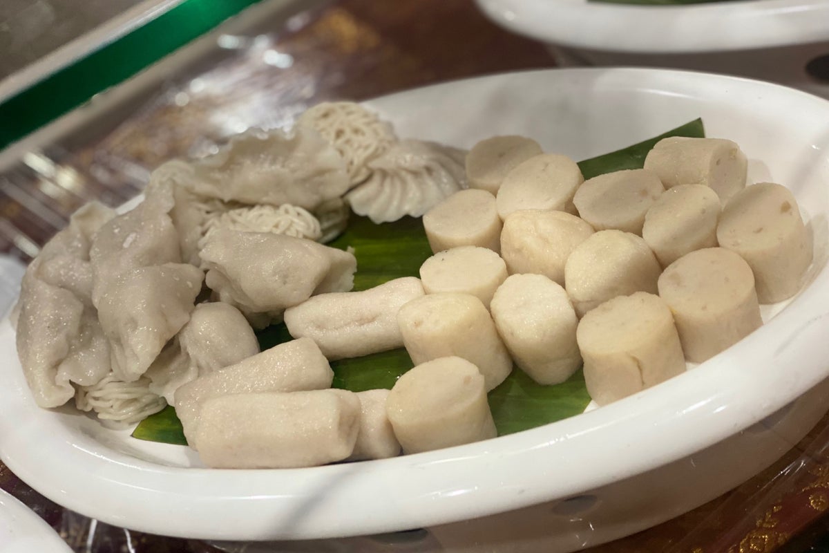 Complete with prawn crackers and kemplang typical Palembang.