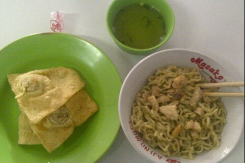 bakmi ijoo + pangsit goreng..