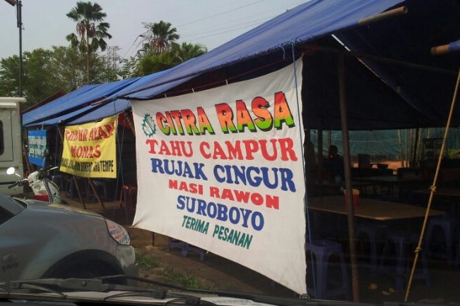 Menu: Nasi Uduk Monas, Soto Mie Bogor, Soto Daging Madura, Soto Ayam, Mie Pangsit, Gado-gado, Kupat Tahu Solo Juice Buah, Es Podeng.