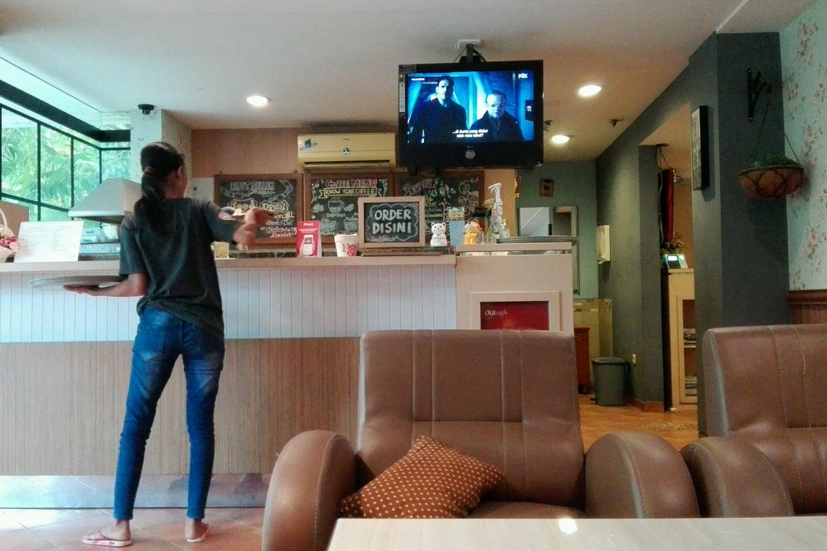 Masi antri.. nunggu d cafe nya.. tp petugasnya megang makanan pake tangan langsung tanpa alat ato sarung tangan.. :((