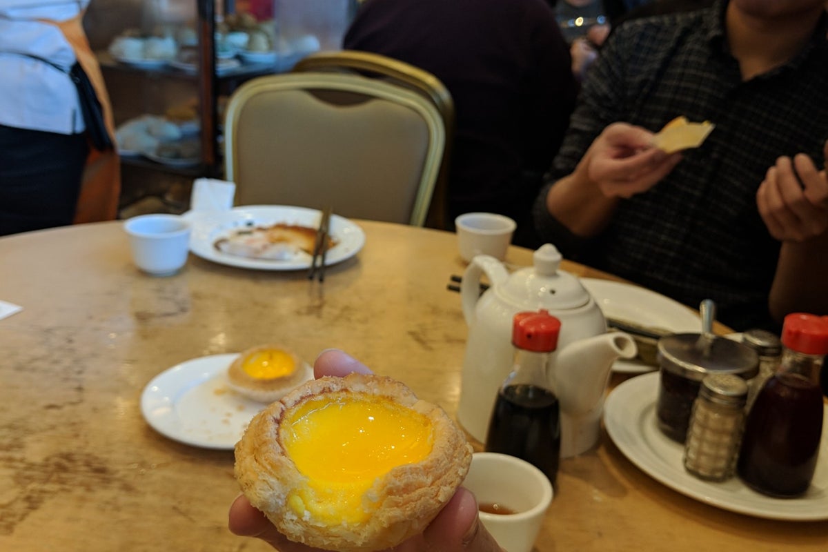 My personal favorite is the jasmine tea, but don't forget to ask for the pork buns. Close it all out with a mango pudding for desert!