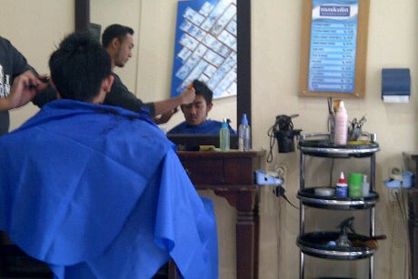 Tempat cukur rambut khusus cowok. Full AC, cozy & ada terapi ceragem nya juga