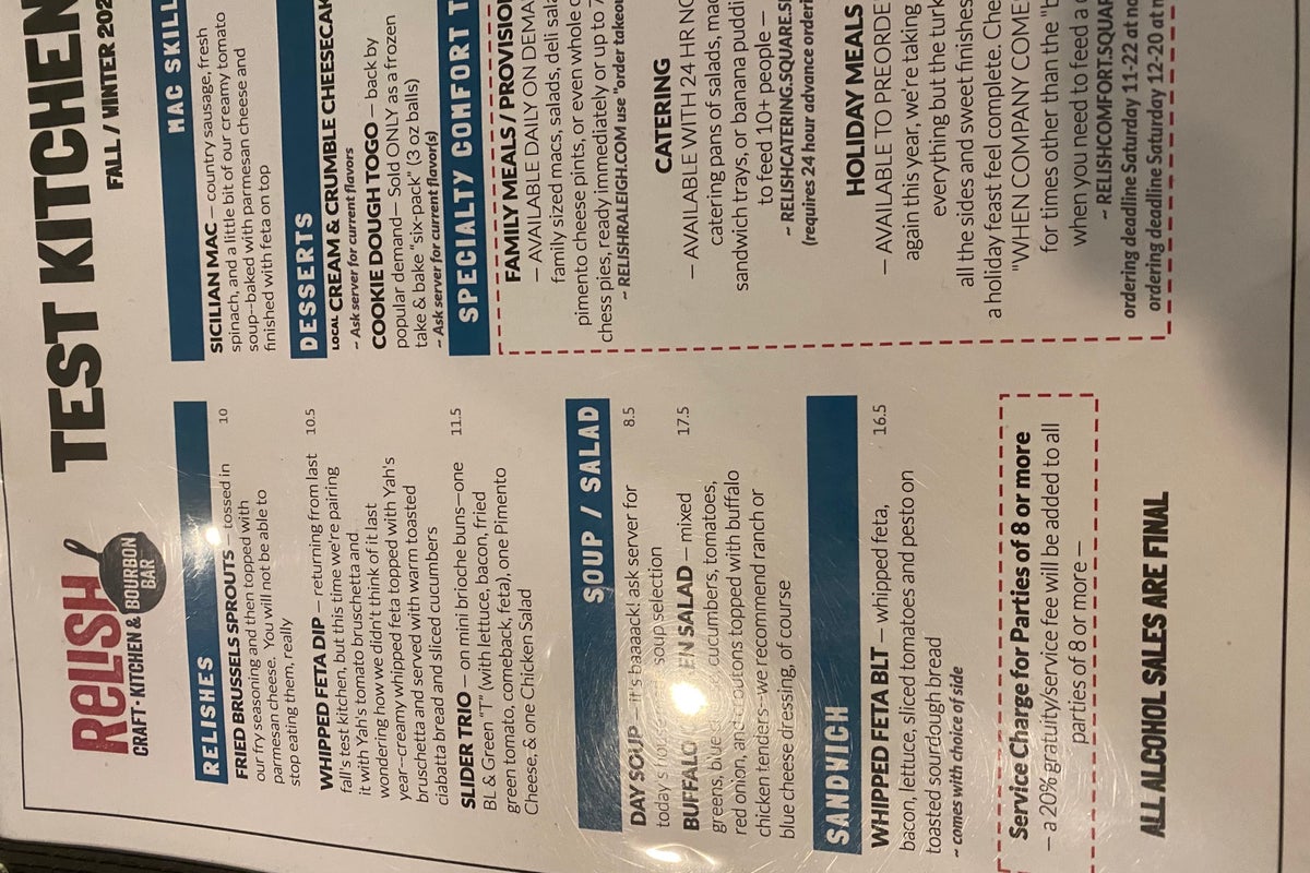 Fish and chips...huge serving and good! Luv the fried pickles. Salads are good. Hubby loves the BBQ nachos and turkey and dressing. I like their salmon. Test kitchen menu has interesting items.
