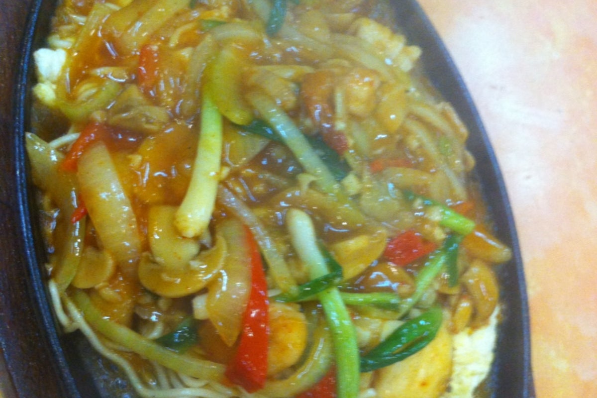 Soup tom yum, mie hot plate, nas gor and es teler