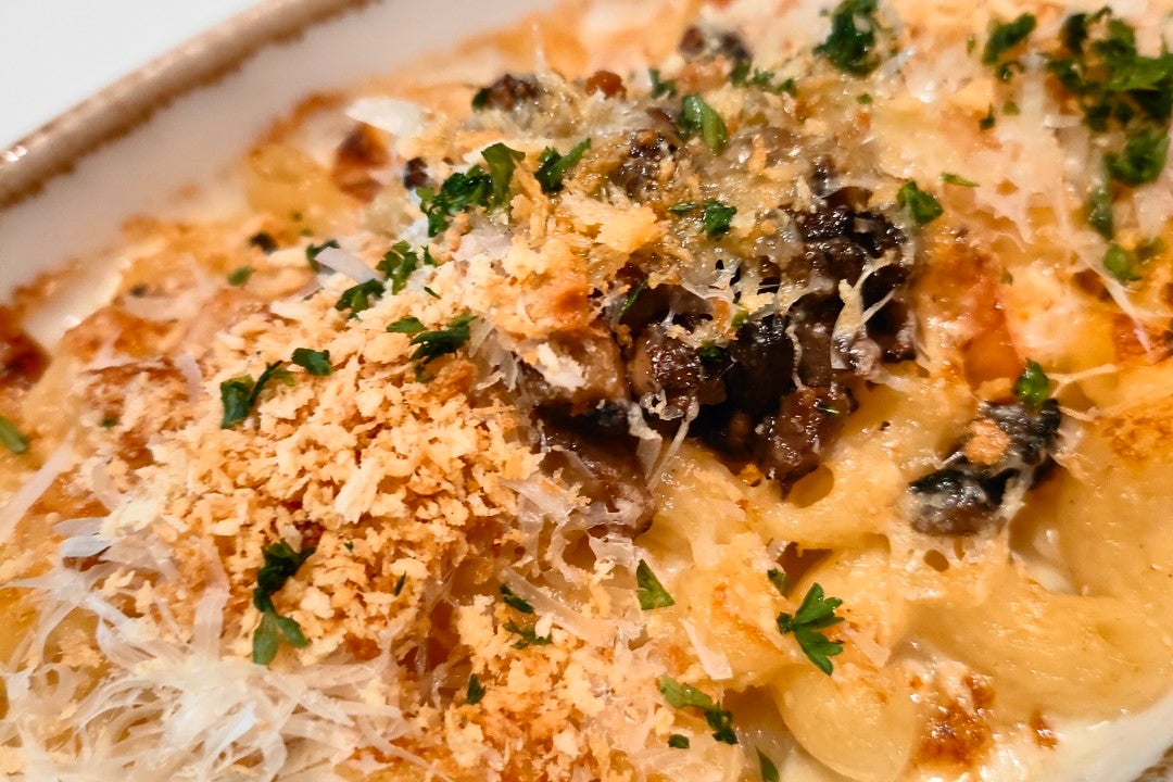 Baked pasta with turkey bacon...