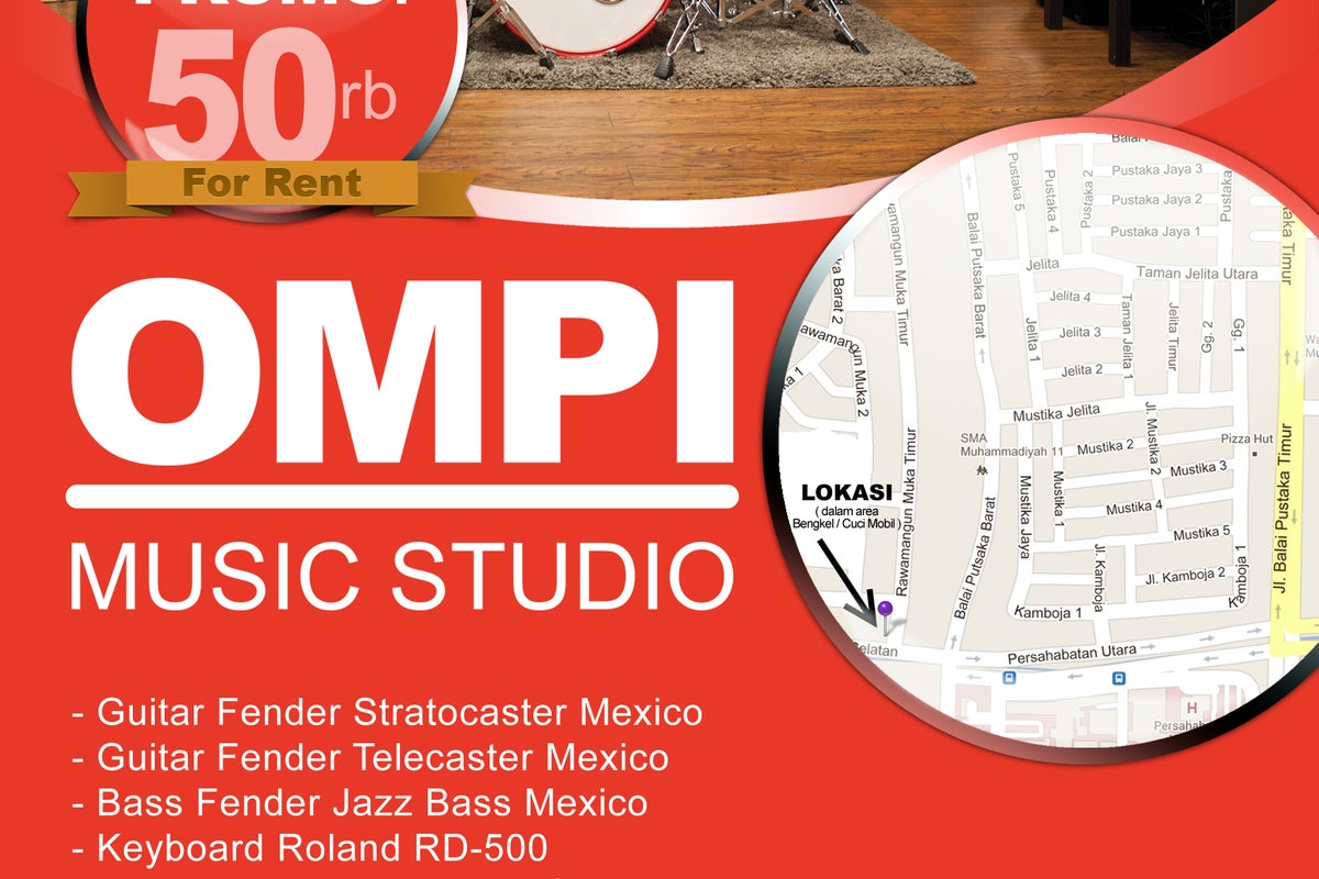 Ompi Music Studio Rawamangun - Cool Place To Jam beralamat di Jl. Rawamangun Muka Timur No.82, Rawamangun, Kotamadya Jakarta Timur
